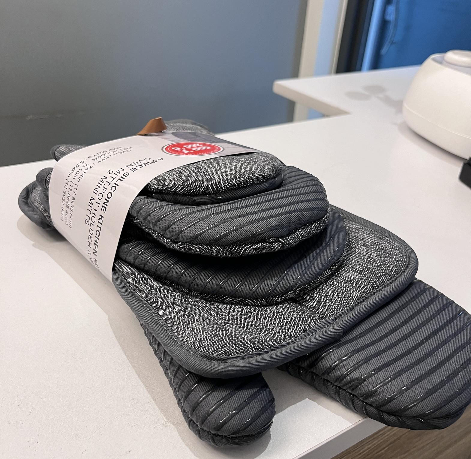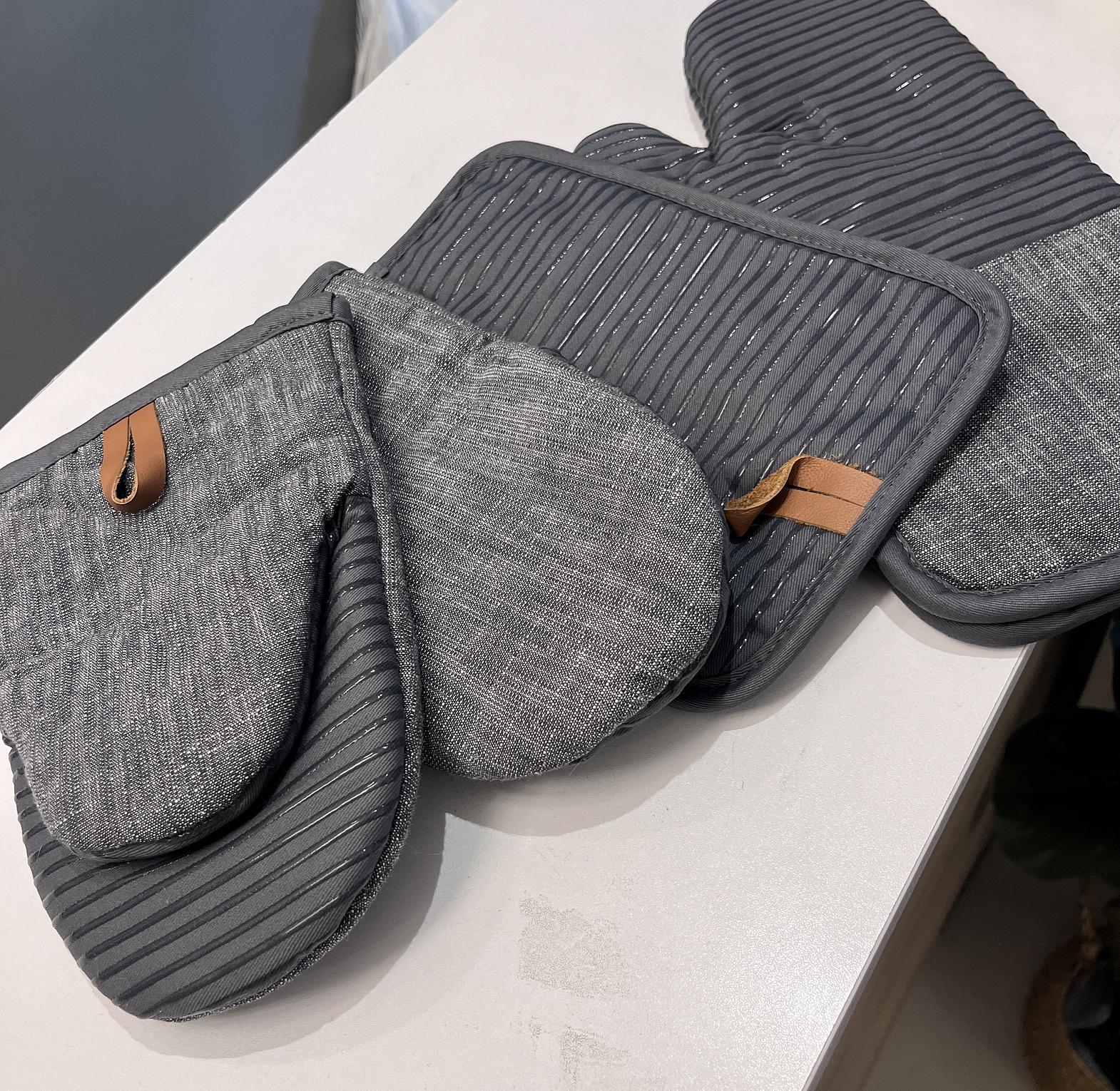 4 piece set oven mitten set 1pc oven mitt: 17x35 cm 1pc pot holder: 17x25cm 2pc mini mitts : 13x22cm