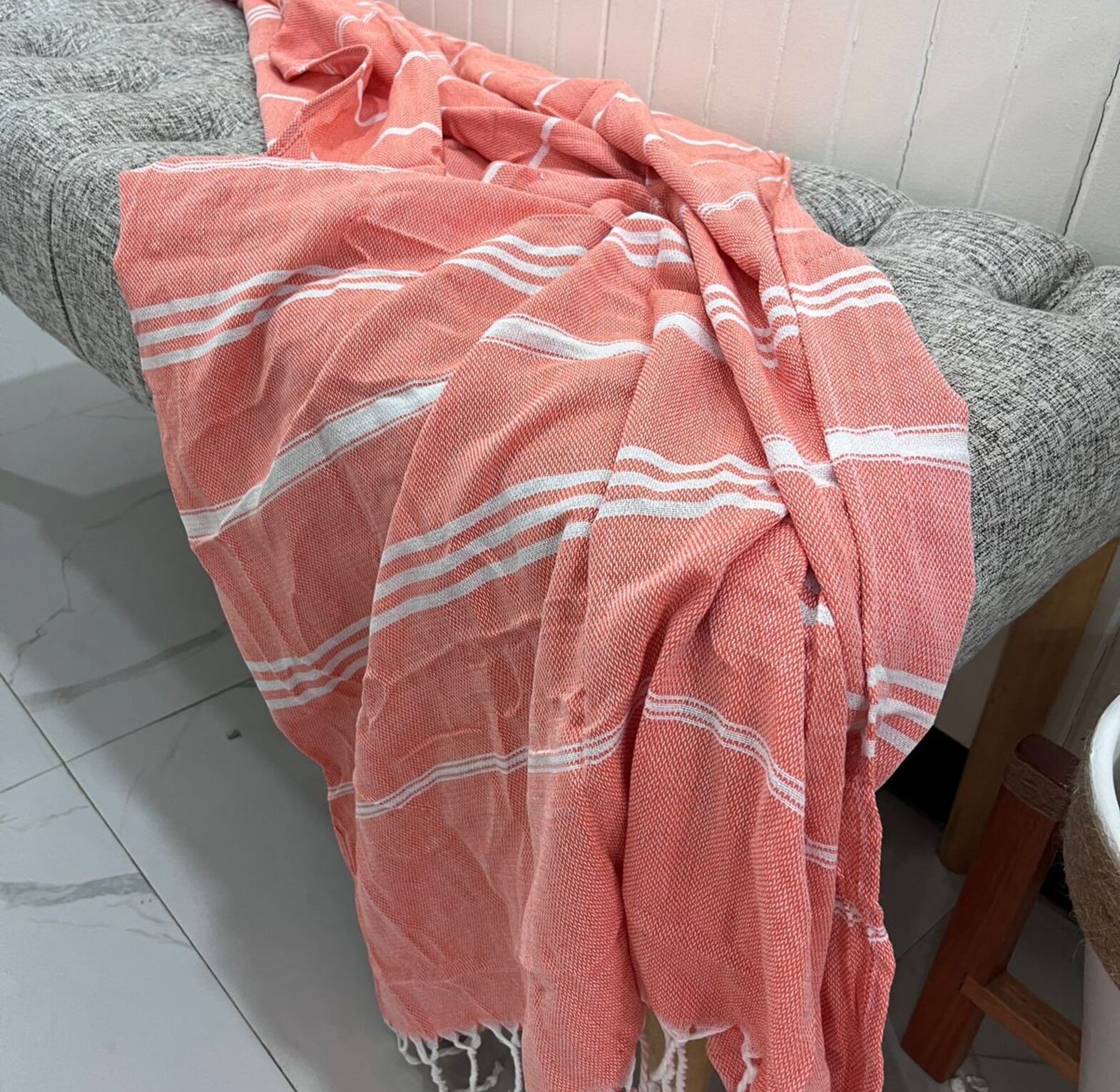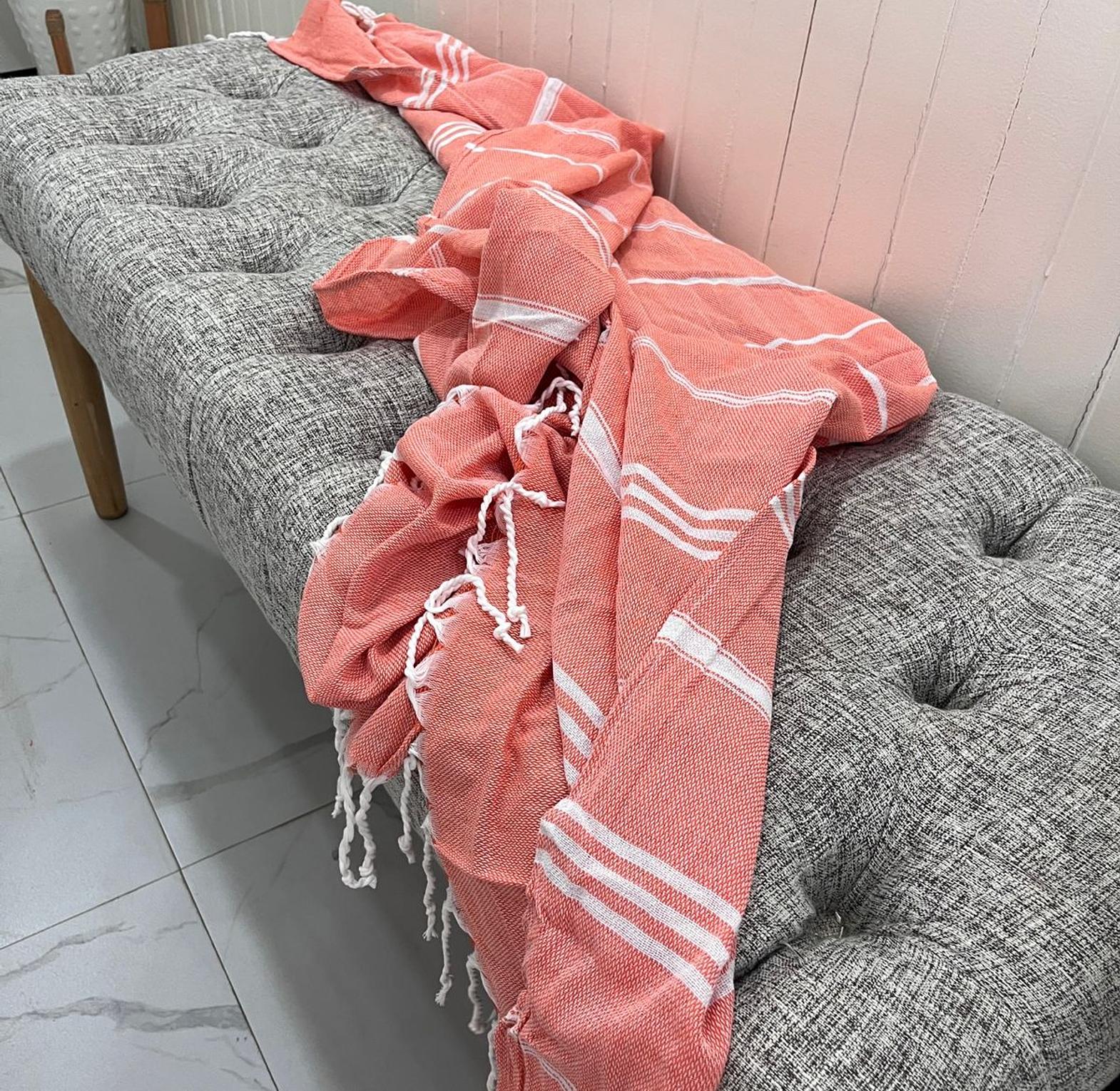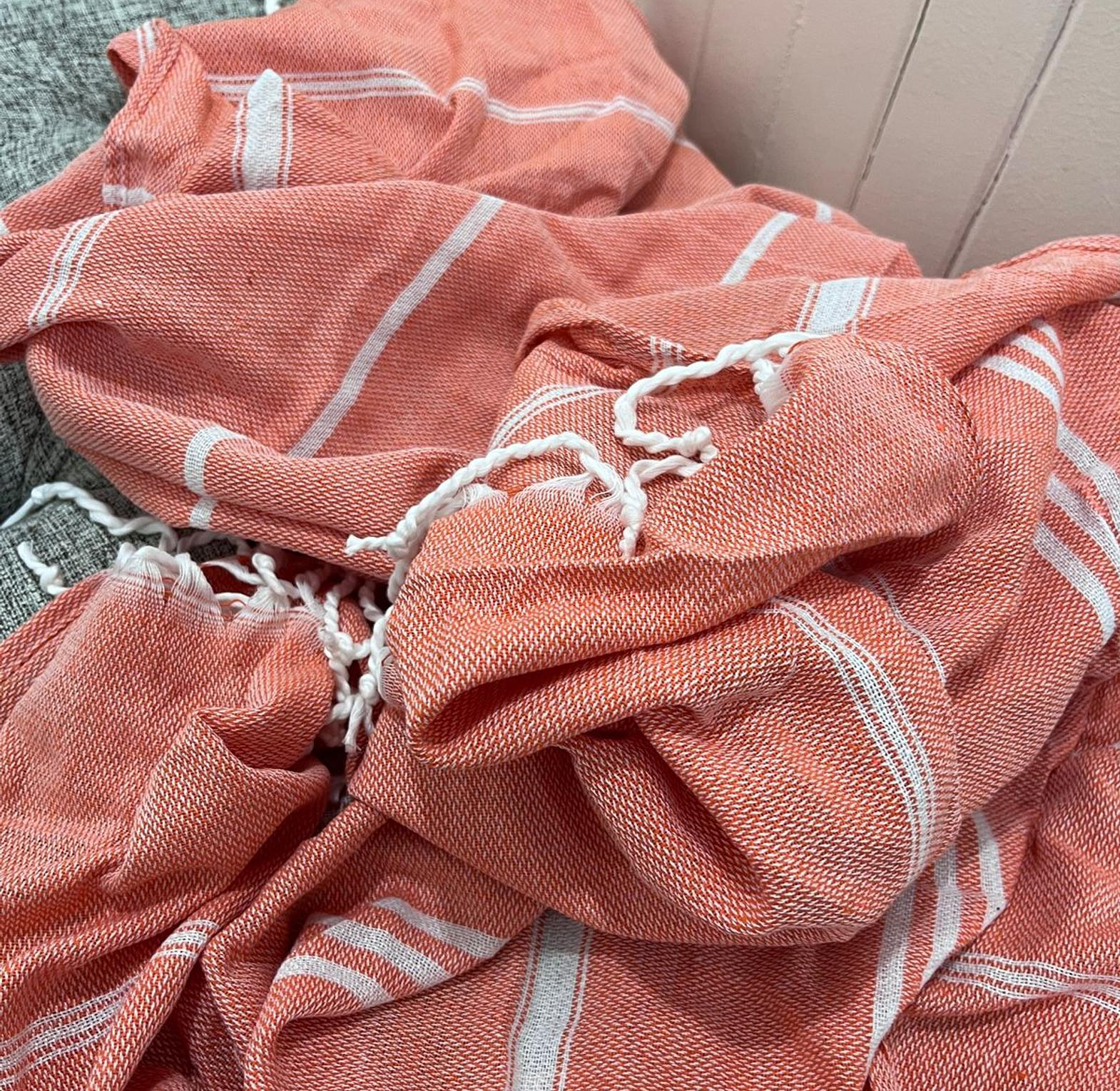 Salmon Throw Blanket with White Tassels